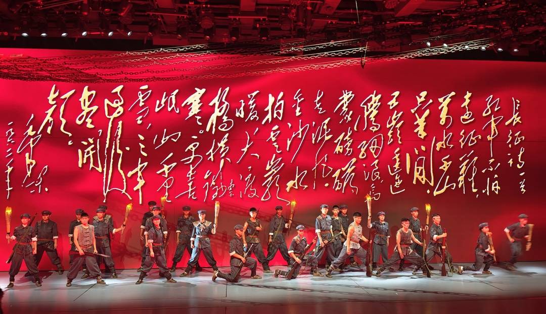 瀘定縣還以“飛奪瀘定橋”戰(zhàn)役為歷史原型,打造了大型紅色舞臺劇《飛奪瀘定橋》。該劇目綜合運用音樂、舞蹈、舞臺美術(shù)裝置,以及多媒體等藝術(shù)手段,全景式再現(xiàn)了該戰(zhàn)役恢弘壯闊、震撼人心的情景。該劇目于2018年正式首演,2023年全面重新打造,截至目前,累計演出超1650場,其中公益性演出達(dá) 350場,覆蓋觀眾約10萬余人次。通過持續(xù)打磨, 劇目不斷優(yōu)化藝術(shù)表現(xiàn),成為川西紅色文旅演藝標(biāo)志性項目。