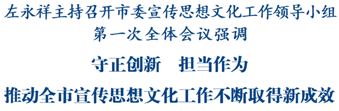 會議深入學習《習近平文化思想學習綱要》,傳達學習全國、全省宣傳部長會議精神以及省委宣傳思想文化工作領(lǐng)導小組第一次全體會議精神,聽取2024年全市宣傳思想文化工作開展情況匯報,審議有關(guān)文件,安排部署下一步重點工作。