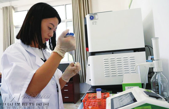 實驗員往試管里滴小麥粉漿做真菌毒素檢測