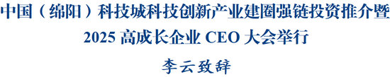 綿陽新聞網(wǎng)訊 6月19日至20日,中國(綿陽)科技城科技創(chuàng)新產(chǎn)業(yè)建圈強鏈投資推介暨2025高成長企業(yè)CEO大會舉行。市委副書記、市長李云出席并致辭。