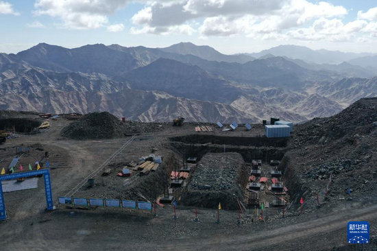 這是6月21日在青海冷湖天文觀測(cè)研究基地拍攝的望遠(yuǎn)鏡項(xiàng)目施工現(xiàn)場(chǎng)(無人機(jī)照片)。新華社記者 陳杰 攝