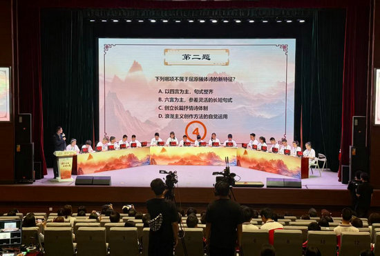 6月19日,第四屆視障讀者“光明閱讀”邀請賽決賽上,視障者和觀眾用盲文和明文同步讀題。(曹銳攝)