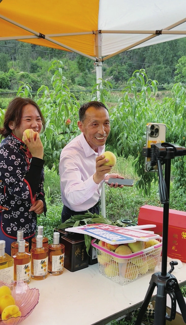 課堂隨即延伸到果園現(xiàn)場。學(xué)員們分組進(jìn)行短視頻創(chuàng)作和直播帶貨實(shí)操。在助農(nóng)“直播團(tuán)”導(dǎo)師的手把手指導(dǎo)下,學(xué)員們架起設(shè)備,對著枝頭鮮桃和農(nóng)特產(chǎn)品,嘗試解鎖“云端賣場”的密碼。