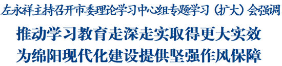 綿陽新聞網(wǎng)訊 6月24日,市委理論學(xué)習(xí)中心組舉行專題學(xué)習(xí)(擴(kuò)大)會(huì),集中學(xué)習(xí)習(xí)近平總書記關(guān)于加強(qiáng)黨的作風(fēng)建設(shè)的重要論述和重要指示批示精神,學(xué)習(xí)黨的十八大以來深入貫徹中央八項(xiàng)規(guī)定精神的成效和經(jīng)驗(yàn),學(xué)習(xí)有關(guān)法規(guī)文件。省委常委、副省長(zhǎng)、市委書記左永祥主持會(huì)議并講話。他強(qiáng)調(diào),要深學(xué)細(xì)悟習(xí)近平總書記重要論述的核心要義,準(zhǔn)確把握黨中央推進(jìn)作風(fēng)建設(shè)的深邃考量,深入落實(shí)中央八項(xiàng)規(guī)定及其實(shí)施細(xì)則精神,進(jìn)一步深化認(rèn)識(shí),統(tǒng)一思想行動(dòng),推動(dòng)學(xué)習(xí)教育走深走實(shí)、取得更大實(shí)效,為綿陽現(xiàn)代化建設(shè)提供堅(jiān)強(qiáng)作風(fēng)保障。