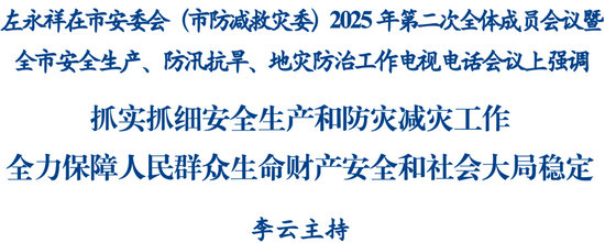 左永祥指出,要加強(qiáng)組織領(lǐng)導(dǎo)和統(tǒng)籌協(xié)調(diào),形成齊抓共管工作格局。市安委會(huì)(市防減救災(zāi)委)和各指揮部要發(fā)揮好牽頭抓總、督促檢查的作用,加強(qiáng)信息共享、資源互補(bǔ)、指揮調(diào)度,嚴(yán)格落實(shí)領(lǐng)導(dǎo)帶班和24小時(shí)值班制度,確保聯(lián)動(dòng)工作機(jī)制高效運(yùn)轉(zhuǎn)。各級(jí)黨委、政府要嚴(yán)格落實(shí)“黨政同責(zé)、一崗雙責(zé)、齊抓共管、失職追責(zé)”要求,推動(dòng)屬地責(zé)任層層壓實(shí)。應(yīng)急管理部門要適時(shí)開展應(yīng)急救援演練,不斷提升應(yīng)急處置能力。各級(jí)領(lǐng)導(dǎo)干部要崇尚嚴(yán)實(shí)作風(fēng),力戒形式主義、官僚主義,采取“四不兩直”方式深入一線督導(dǎo)檢查,真正把壓力傳導(dǎo)到基層末梢、把工作落實(shí)到最小單元。