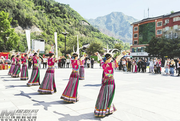 在文化集市里,平武本土?xí)?、文?chuàng)產(chǎn)品及非遺手作等特色產(chǎn)品琳瑯滿目,“報恩情韻”民俗文化表演中,白馬歌舞、羌族歌舞等極具特色的民俗節(jié)目讓游客流連忘返。夜幕降臨,西城門廣場的鍋莊舞更是將歡樂的氛圍推向高潮,游客與本地市民手拉手共舞,在歡快節(jié)奏中感受民族文化魅力。這種“文物保護+文化體驗+消費場景”的融合發(fā)展模式,正是平武推進文化遺產(chǎn)保護和文博旅游發(fā)展的生動實踐。