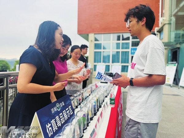 工作人員指導(dǎo)學(xué)子識別各類毒品
