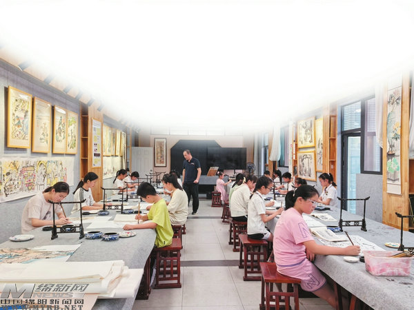 巖彩畫社團的學(xué)生正在練習(xí)畫畫