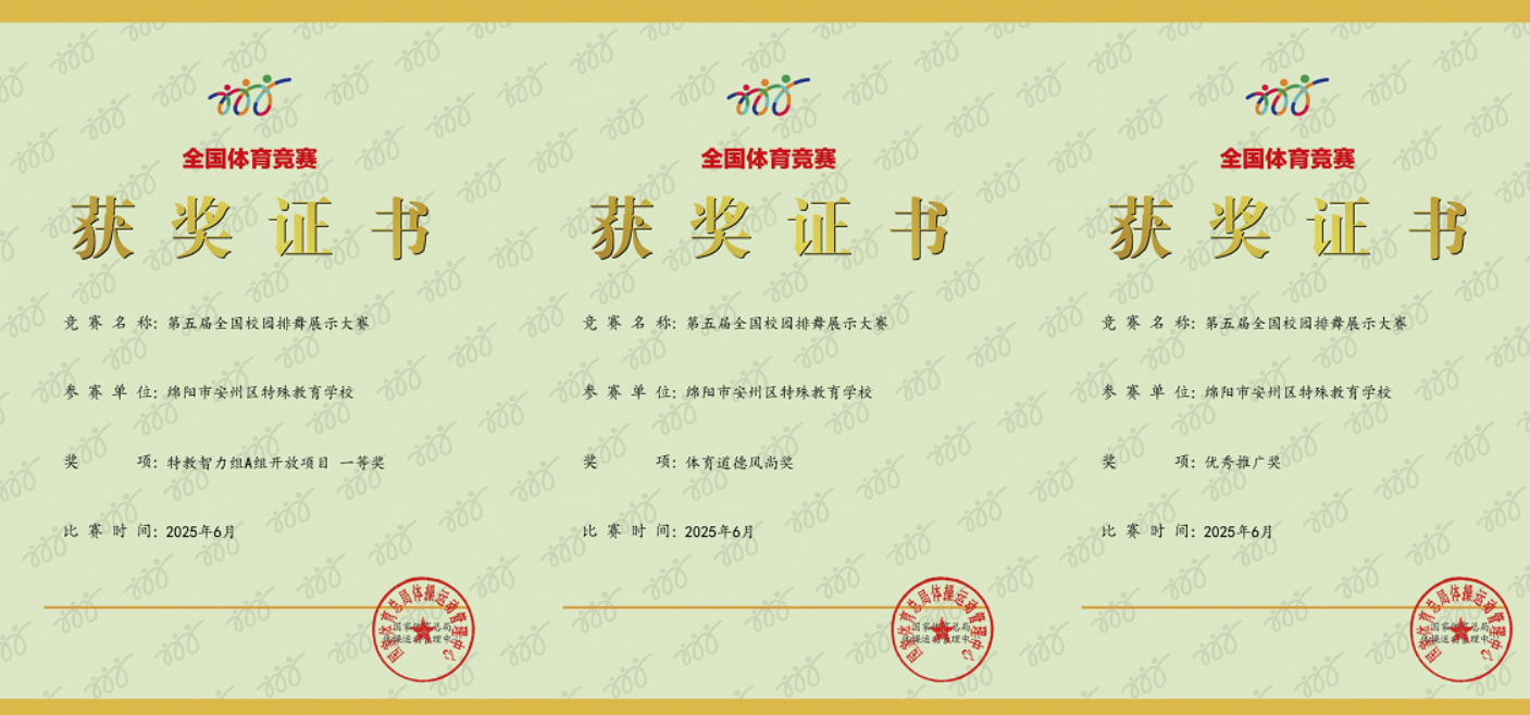 綿陽新聞網(wǎng)訊 近日,“陽光排舞進校園 我的時代正精彩”第五屆全國校園排舞網(wǎng)絡(luò)展示大賽圓滿結(jié)束。安州區(qū)特殊教育學(xué)校推送的舞蹈在特教智力組A組開放項目中脫穎而出,以同組別最高得分榮獲一等獎,同時榮獲體育道德風(fēng)尚獎和優(yōu)秀推廣獎。