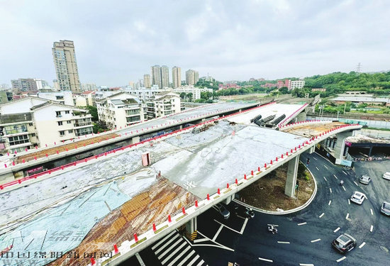 橋下交通已恢復(fù),新的三匯立交橋主體已完工,預(yù)計8月底完成橋面鋪裝,屆時兩條匝道將達(dá)到通車條件
