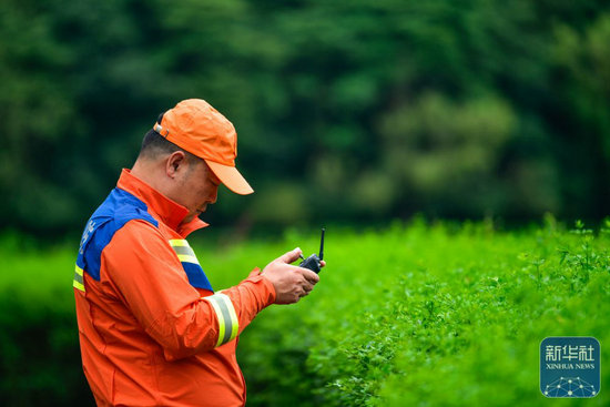 ↑7月1日,護(hù)林員在貴陽市長(zhǎng)坡嶺國(guó)有林場(chǎng)通過無人機(jī)監(jiān)測(cè)林區(qū)情況。