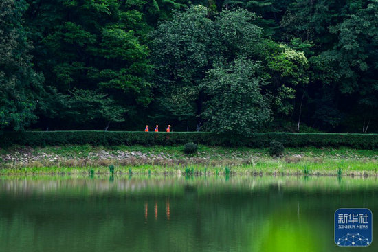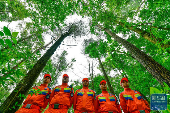↑7月1日,貴陽市長(zhǎng)坡嶺國(guó)有林場(chǎng)的部分護(hù)林員在林區(qū)合影。