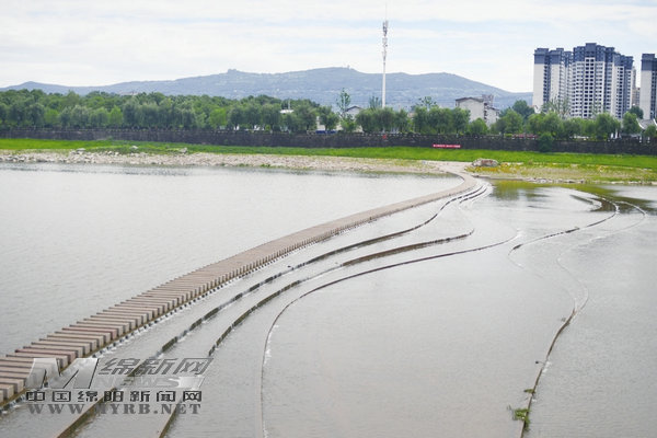 龍門堰位于梓潼城區(qū)河段江心洲魚(yú)嘴上游120米處。新建的低堰打破了河道水面單調(diào)的線性流動(dòng)狀態(tài),塑造出層次豐富的水域景觀。沿岸精心打造的親水平臺(tái)、蜿蜒的景觀步道,增強(qiáng)了城市的休閑娛樂(lè)功能,提升了城區(qū)的景觀品質(zhì)。