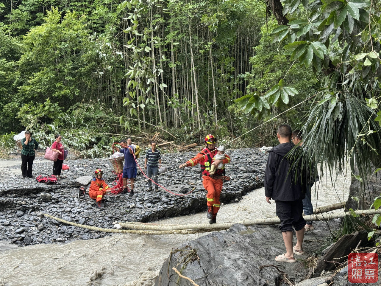 通道穩(wěn)固后,救援隊(duì)員迅速組織受困村民有序轉(zhuǎn)移。高燒嬰兒被救援隊(duì)員優(yōu)先護(hù)送過(guò)橋,并第一時(shí)間交由現(xiàn)場(chǎng)待命的醫(yī)護(hù)人員進(jìn)行檢查和初步處置。