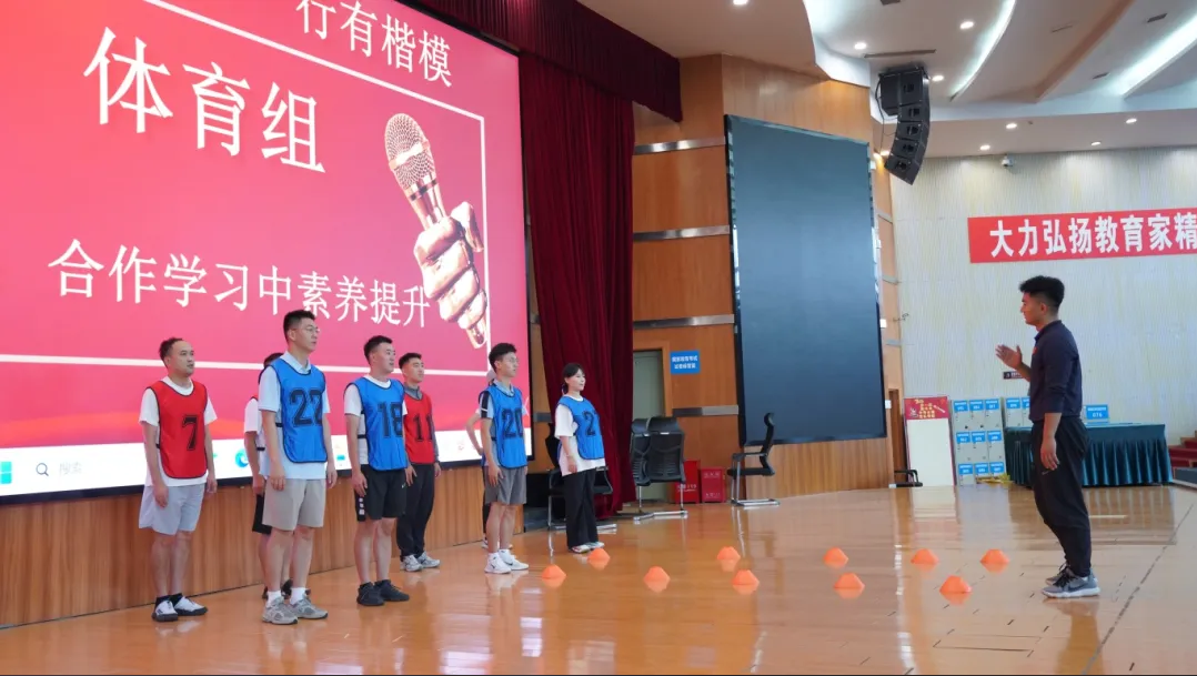 體育組通過理論基礎(chǔ)講解與模擬授課展示的形式,展示了如何在合作學(xué)習(xí)中提升學(xué)生素養(yǎng)的方法。