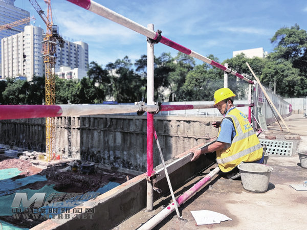 檢查人員現(xiàn)場看到,工人們正沿著基坑邊砌防水擋邊。“下大雨時(shí),能一定程度阻隔水流向施工基坑里。”現(xiàn)場工人說。
