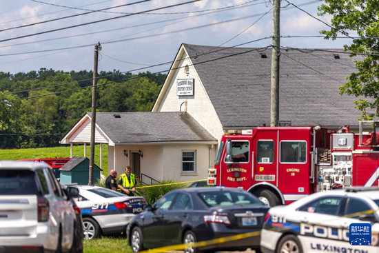 7月13日,執(zhí)法人員在美國肯塔基州列克星敦市的槍擊現(xiàn)場附近工作。新華社/美聯(lián)