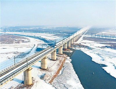 沿著哈大高鐵線,動(dòng)車組列車在皚皚白雪中行進(jìn)。趙 旭攝