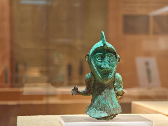 展出的“執(zhí)鐵劍銅武士像”。(云南省博物館供圖)