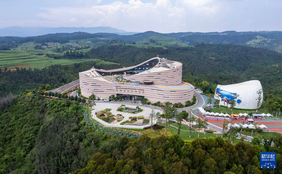 這是7月15日拍攝的澄江化石地世界自然遺產博物館(無人機照片)。