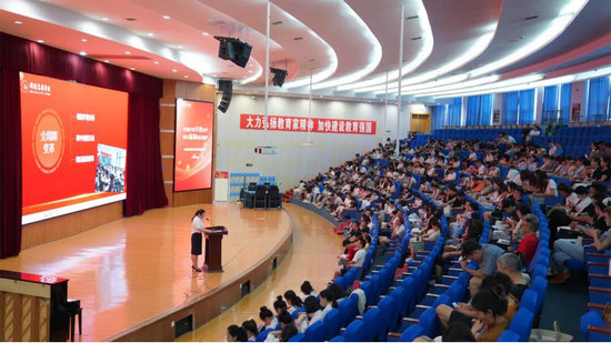 隨后,梁春艷立足當前教育發(fā)展大勢,客觀剖析了學校面臨的機遇與挑戰(zhàn),直指發(fā)展中的短板弱項并提出系統(tǒng)性解決方案。她著重強調(diào),這份亮眼答卷的每一頁都浸透著全體教師的心血與汗水,她寄語全體教職工,要以教育家精神為引領,深耕課堂主陣地、厚植愛生情懷,在新學年錨定目標、勇毅篤行,續(xù)寫追光逐夢的嶄新篇章。