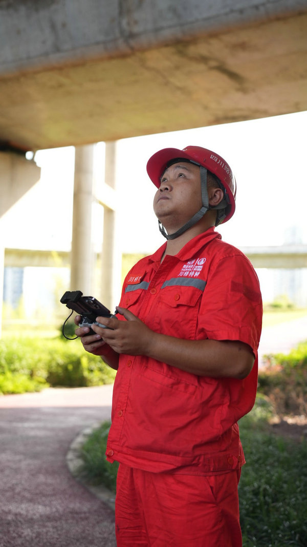不僅供電行業(yè),還有許多行業(yè)在高溫下堅(jiān)守工作。7月17日,在宜賓鹽坪壩大橋,四川路橋橋梁工程有限責(zé)任公司特種工程分公司的工作人員在高溫下檢查大橋伸縮縫的安全情況,借助無(wú)人機(jī),巡護(hù)時(shí)間大大縮短。