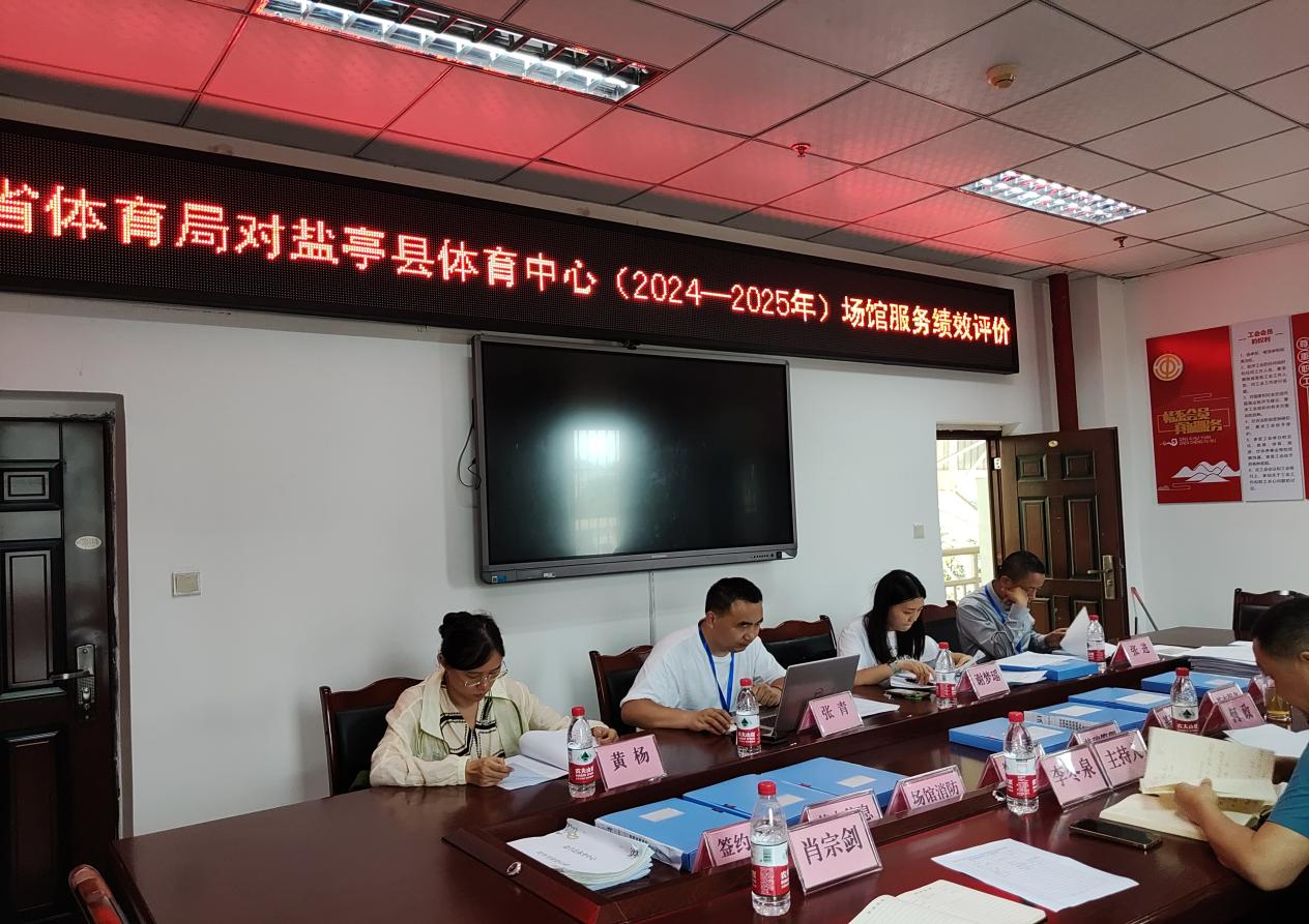 7月7日,由四川省體育場(chǎng)館協(xié)會(huì)發(fā)展部主任謝夢(mèng)瑤帶領(lǐng)的專家考核組一行3人, 在綿陽市教育和體育局社會(huì)體育科干部黃楊的陪同下,深入鹽亭縣體育中心,就鹽亭縣體育場(chǎng)館2024年7月-2025年6月免費(fèi)低收費(fèi)開放服務(wù)工作進(jìn)行績(jī)效評(píng)價(jià),鹽亭縣教體局黨組書記、局長(zhǎng)何政,教體局黨組成員、教育考試中心主任李冬泉,教體局體衛(wèi)藝股股長(zhǎng)袁軍,鹽亭縣體育中心主任蒲廷彪等領(lǐng)導(dǎo)參加評(píng)價(jià)會(huì)議并匯報(bào)有關(guān)工作。評(píng)價(jià)考核匯報(bào)會(huì)議由李冬泉主持。