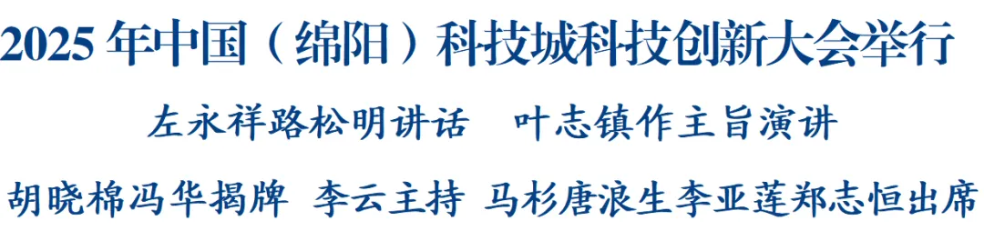 左永祥在講話中向各位嘉賓的到來(lái)表示歡迎,向長(zhǎng)期以來(lái)關(guān)心支持綿陽(yáng)科技事業(yè)發(fā)展的各界人士表示感謝。他指出,綿陽(yáng)作為中國(guó)唯一科技城、我國(guó)重要的國(guó)防軍工和科研生產(chǎn)基地,在全國(guó)創(chuàng)新版圖中具有重要地位、肩負(fù)重要使命??萍汲墙ㄔO(shè)25年來(lái),我們牢記使命、積極探索,推動(dòng)科技城創(chuàng)新能級(jí)實(shí)現(xiàn)質(zhì)的躍升。今年以來(lái),我們大力實(shí)施科技創(chuàng)新賦能行動(dòng),推動(dòng)院地雙向奔赴、科產(chǎn)深度融合、軍民協(xié)同創(chuàng)新、資源要素集聚,新質(zhì)生產(chǎn)力加速形成,技術(shù)新發(fā)明、產(chǎn)業(yè)新賽道、體制新動(dòng)能在科技城不斷涌現(xiàn),正加快建設(shè)中國(guó)特色社會(huì)主義科技創(chuàng)新先行區(qū)。