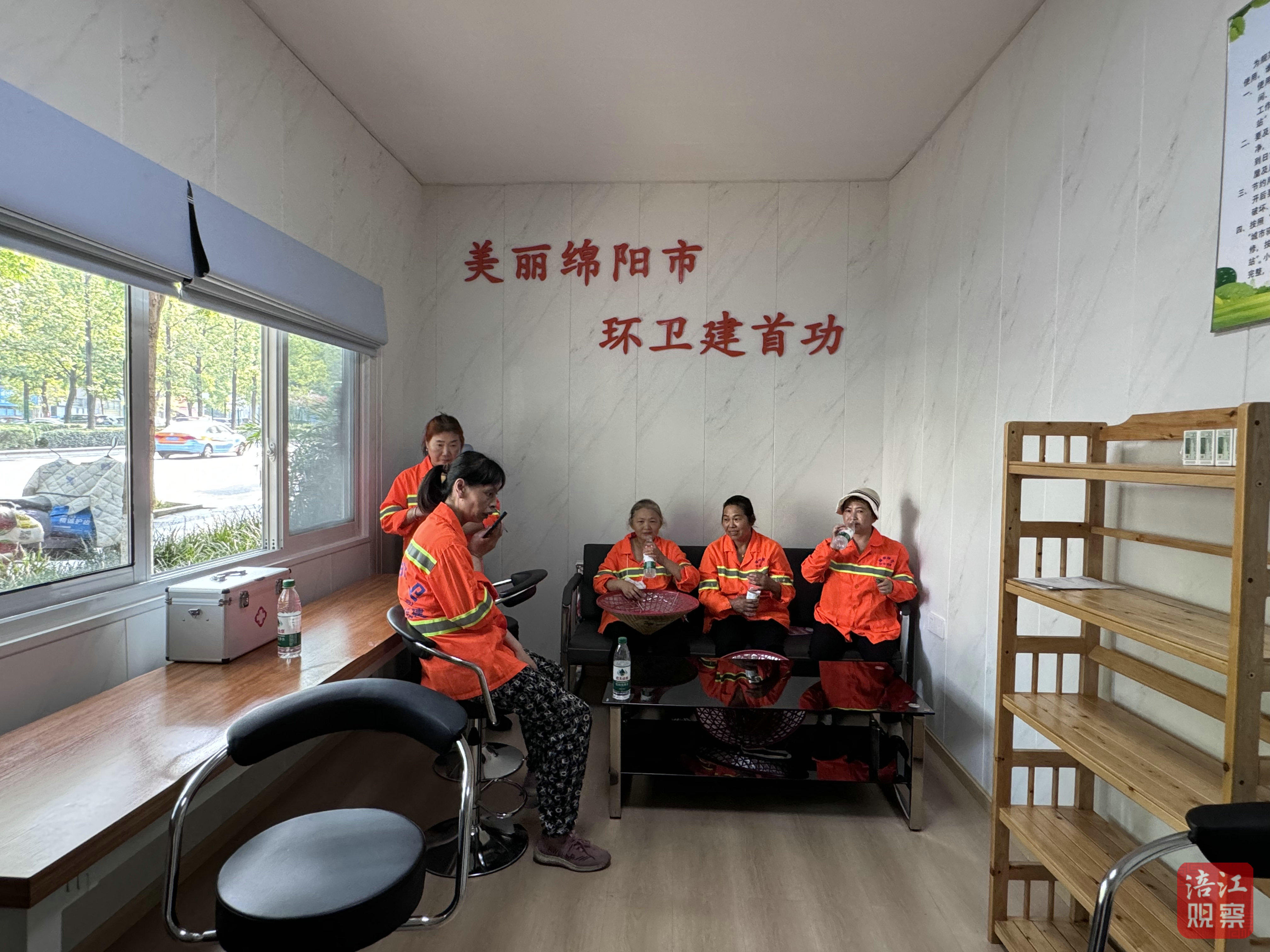 “這大熱天,掃完街能進(jìn)來吹空調(diào)、喝口水,真是解了燃眉之急!”7月17日,在綿陽游仙區(qū)沈家壩三星路忙碌了一上午的環(huán)衛(wèi)工人王鳳瓊,和同事們走進(jìn)路邊的“城市美容師驛站”。