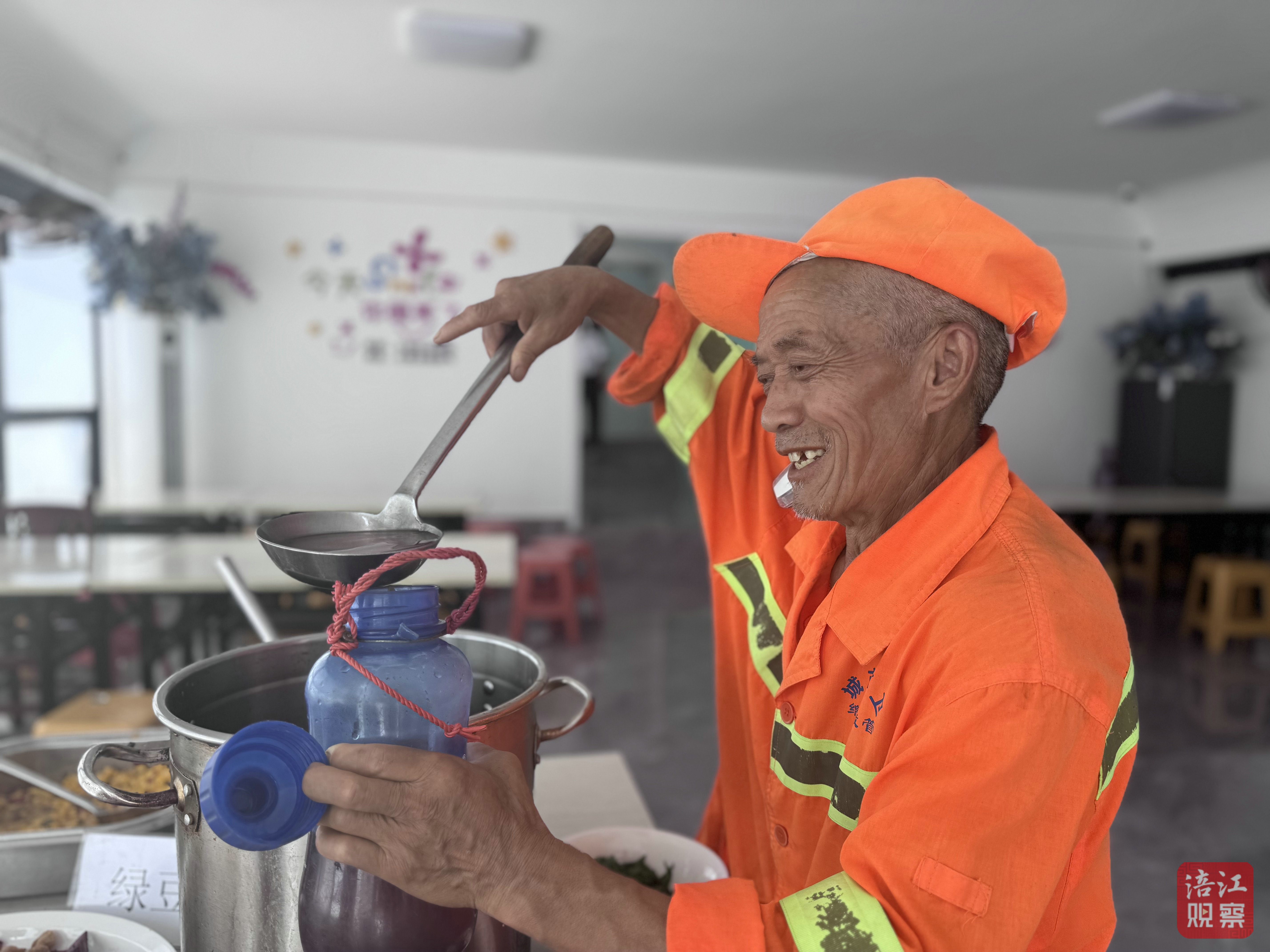 “這里真是清涼港灣。”一名環(huán)衛(wèi)工人滿臉笑意地說:“進(jìn)來喝口水、歇一會(huì)兒,里面有空調(diào)、醫(yī)藥箱,還有微波爐能把飯菜加熱。雖然天氣熱得讓人難受,但心里特別涼快!”