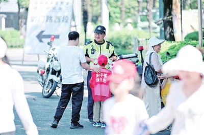 一瓶水,溫暖的是人心,凝聚的是文明?;顒?dòng)結(jié)束后,小小志愿者們開啟了一場(chǎng)“接力”:他們?cè)趷坌谋耦I(lǐng)取瓶裝水后,在老師和家長(zhǎng)的帶領(lǐng)下,走向烈日下的街頭,將這份“清涼”送到烈日下?lián)]汗如雨的戶外工作者手中。