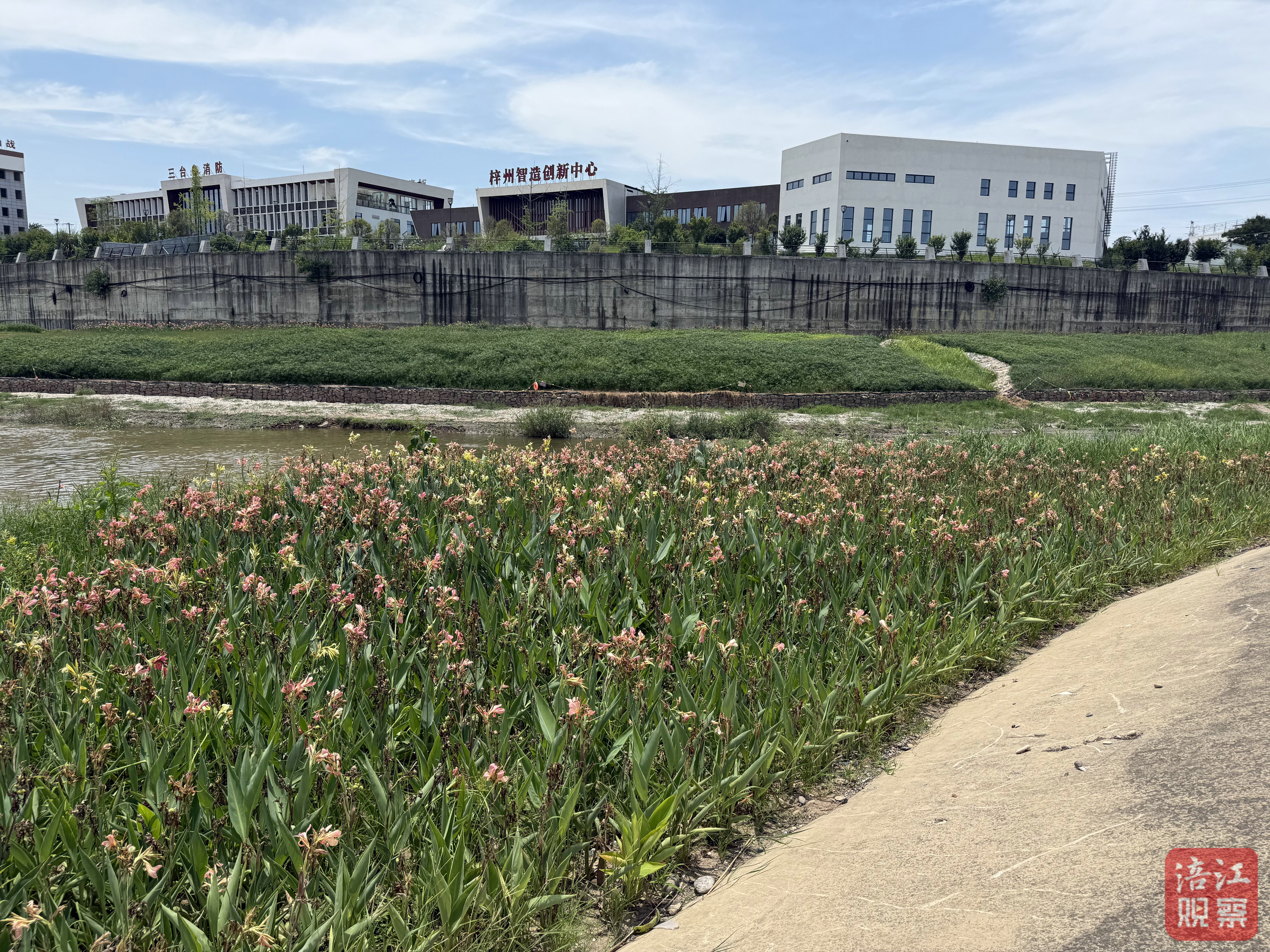 7月21日,記者來到現(xiàn)場看到,河道兩岸成片的粉美人蕉正在夏日陽光下“舒展身姿”。然而,這些“高顏值”的鮮花是否“華而不實”?