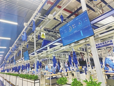 走進(jìn)園區(qū)的5G+智慧工廠,這里的物料機(jī)器人來(lái)回穿梭自動(dòng)補(bǔ)料,自動(dòng)裁床精準(zhǔn)裁剪布料,巡檢機(jī)器人用“火眼金睛”揪出瑕疵品……電子屏幕上還滾動(dòng)顯示著實(shí)時(shí)生產(chǎn)進(jìn)度、達(dá)成率等數(shù)據(jù)。安吉納體育用品有限公司總經(jīng)理夏太洪透露,園區(qū)引進(jìn)了智能倉(cāng)儲(chǔ)、智能裁剪、智能模板、智能充絨、智能吊掛等一系列先進(jìn)設(shè)備,相比傳統(tǒng)生產(chǎn)方式極大提高了生產(chǎn)效率,一件服裝只用1-3個(gè)小時(shí)就可以實(shí)現(xiàn)出庫(kù)。本次投產(chǎn)的一期項(xiàng)目新建廠房及研發(fā)設(shè)計(jì)中心4.5萬(wàn)平方米、全智能成衣生產(chǎn)線20條,年產(chǎn)能將達(dá)1000萬(wàn)件。