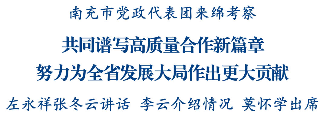 左永祥在講話中代表綿陽市委、市政府對南充市黨政代表團(tuán)一行來綿表示歡迎,向南充一直以來對綿陽經(jīng)濟(jì)社會發(fā)展的支持幫助表示感謝。他說,南充歷史悠久、底蘊(yùn)深厚,近年來認(rèn)真落實黨中央和省委決策部署,牢牢把握高質(zhì)量發(fā)展首要任務(wù),全力以赴拼經(jīng)濟(jì)、搞建設(shè),推動經(jīng)濟(jì)社會發(fā)展取得了積極成效。綿陽是黨中央、國務(wù)院批準(zhǔn)建設(shè)的中國唯一科技城,正把發(fā)揮中國科技城優(yōu)勢加快建成省域經(jīng)濟(jì)副中心作為推動高質(zhì)量發(fā)展的總牽引、總抓手,大力實施“八大行動”,扎實抓好“四張清單”,各項事業(yè)取得了新的進(jìn)展。綿陽與南充地緣相近、人緣相親,長期以來交往密切、情誼綿長。當(dāng)前,兩地又共同肩負(fù)著建設(shè)省域經(jīng)濟(jì)副中心、帶動區(qū)域協(xié)同發(fā)展的重大使命,合作空間十分廣闊。希望雙方以此次協(xié)議簽署為契機(jī),進(jìn)一步完善多層次常態(tài)化合作機(jī)制,攜手謀劃推動一批標(biāo)志性、引領(lǐng)性重大事項和重點項目,共同譜寫高質(zhì)量合作新篇章,努力為全省發(fā)展大局作出更大貢獻(xiàn)。在重點產(chǎn)業(yè)共促上協(xié)同聯(lián)動,圍繞推動重點產(chǎn)業(yè)建圈強(qiáng)鏈,構(gòu)建供需對接機(jī)制,開展務(wù)實合作,著力打造區(qū)域性產(chǎn)業(yè)集群;用好巴蜀文化、三國文化等品牌,加強(qiáng)旅游線路共建、客源共享、市場共推,深化兩地文旅合作,推動互利共贏。在基礎(chǔ)設(shè)施共建上協(xié)同聯(lián)動,強(qiáng)化交通規(guī)劃銜接,加強(qiáng)物流信息共享、倉儲設(shè)施共用,推動中歐班列運營協(xié)作,為全省構(gòu)筑向西開放戰(zhàn)略高地貢獻(xiàn)力量。在公共服務(wù)共享上協(xié)同聯(lián)動,加強(qiáng)基本公共服務(wù)標(biāo)準(zhǔn)協(xié)同,推動公共資源聯(lián)通共享,拓展“涪江通辦”服務(wù)范圍,深化政務(wù)服務(wù)對接和高頻民生事項“跨域通辦”,讓兩地人民共享更加優(yōu)質(zhì)便利的公共服務(wù)。在生態(tài)環(huán)境共治上協(xié)同聯(lián)動,完善生態(tài)環(huán)境治理協(xié)作機(jī)制,加強(qiáng)嘉陵江和涪江流域跨區(qū)域生態(tài)保護(hù)和修復(fù),深化干支流、上下游、左右岸系統(tǒng)治理,共護(hù)“一江碧水”、共建生態(tài)屏障。
