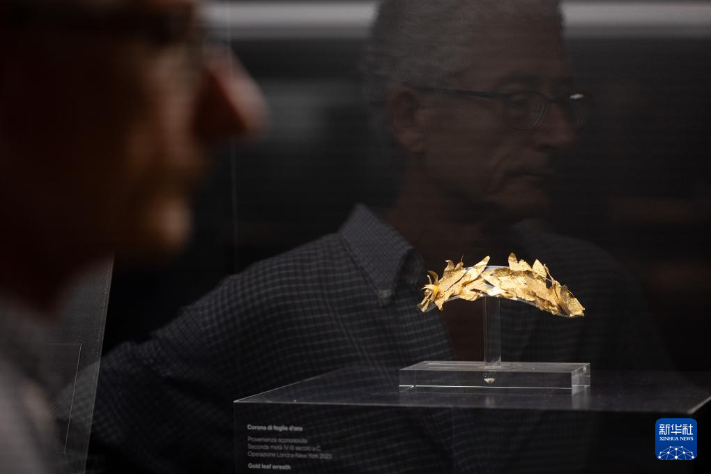 7月24日,參觀者在意大利羅馬的被收復(fù)藝術(shù)品博物館觀看展品。