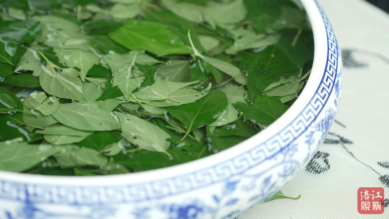 民宿負(fù)責(zé)人陳遠航向記者詳細(xì)展示了制作工藝:“我們嚴(yán)格遵循古法,選用晨露未干時采摘的黃荊嫩葉,經(jīng)山泉水沖洗、鹽水浸泡、石臼搗爛、細(xì)紗過濾等十二道工序,最后冷藏定型。”