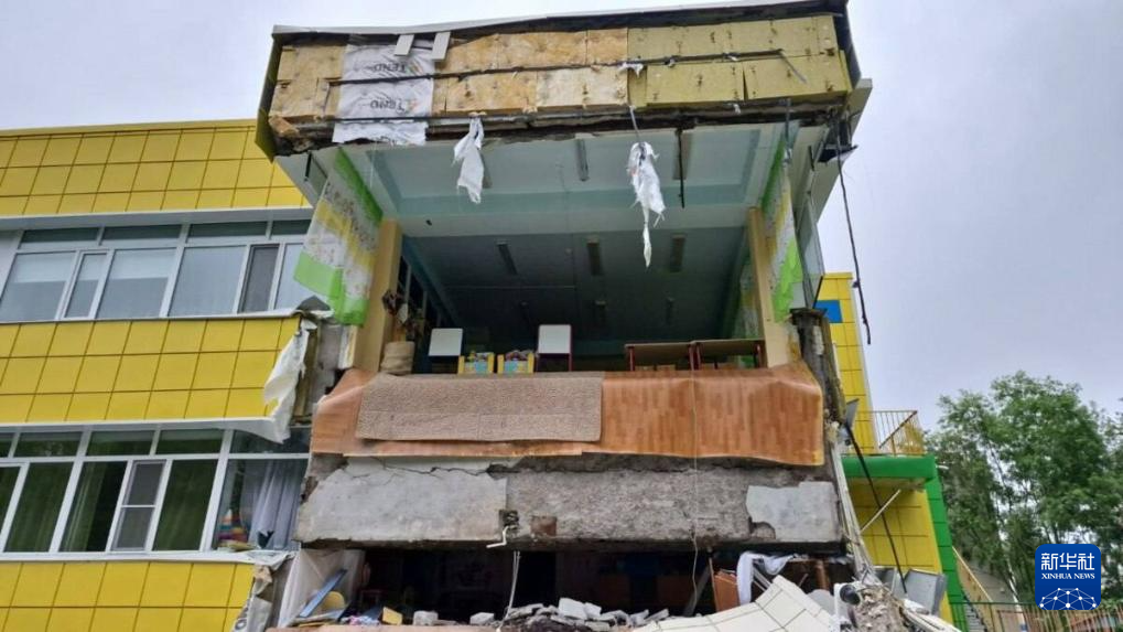 這是7月30日拍攝的俄羅斯堪察加彼得羅巴甫洛夫斯克市在地震中受損的幼兒園。新華社發(fā)(俄羅斯勘察加邊疆區(qū)政府供圖)