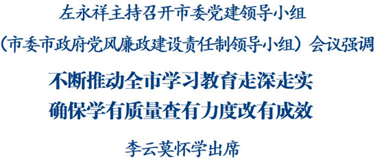 會(huì)議深入學(xué)習(xí)習(xí)近平總書記在中央政治局第二十一次集體學(xué)習(xí)的重要講話精神,學(xué)習(xí)省委黨建領(lǐng)導(dǎo)小組(省委省政府黨風(fēng)廉政建設(shè)責(zé)任制領(lǐng)導(dǎo)小組)會(huì)議精神,聽取全市開展深入貫徹中央八項(xiàng)規(guī)定精神學(xué)習(xí)教育集中整治問題整改推進(jìn)情況匯報(bào),肯定了集中整治工作取得的階段性成效,對持續(xù)用力抓好學(xué)習(xí)教育后續(xù)工作作出安排部署。