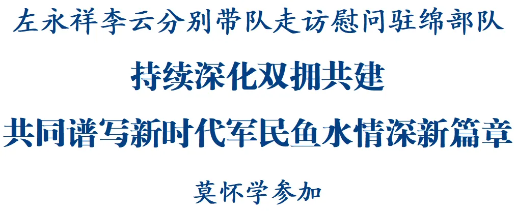 左永祥一行先后前往綿陽(yáng)軍分區(qū)、武警第二機(jī)動(dòng)總隊(duì)某支隊(duì)和63820部隊(duì),看望慰問部隊(duì)官兵,詢問了解學(xué)習(xí)生活、訓(xùn)練執(zhí)勤等情況,并向他們送上節(jié)日祝福。左永祥指出,近年來(lái)駐綿部隊(duì)堅(jiān)定以習(xí)近平強(qiáng)軍思想為指導(dǎo),堅(jiān)決貫徹軍委主席負(fù)責(zé)制,聚焦練兵備戰(zhàn)錘煉過(guò)硬本領(lǐng),認(rèn)真完成各項(xiàng)軍事任務(wù),大力支持參與地方建設(shè),在急難險(xiǎn)重任務(wù)中奮勇?lián)?dāng)、沖鋒在前,贏得了全市人民的廣泛贊譽(yù)。同時(shí),廣大官兵大力弘揚(yáng)擁政愛民光榮傳統(tǒng),積極踐行全心全意為人民服務(wù)的宗旨,把駐地當(dāng)故鄉(xiāng)、視人民為親人,展示了人民子弟兵的良好精神風(fēng)貌。當(dāng)前,綿陽(yáng)正深入學(xué)習(xí)貫徹習(xí)近平總書記對(duì)四川工作系列重要指示精神,全面落實(shí)黨中央和省委決策部署,扎實(shí)開展深入貫徹中央八項(xiàng)規(guī)定精神學(xué)習(xí)教育,把發(fā)揮中國(guó)科技城優(yōu)勢(shì)加快建成省域經(jīng)濟(jì)副中心作為推動(dòng)高質(zhì)量發(fā)展的總牽引、總抓手,大力實(shí)施“八大行動(dòng)”,扎實(shí)抓好“四張清單”,全力以赴拼經(jīng)濟(jì)搞建設(shè),因地制宜發(fā)展新質(zhì)生產(chǎn)力,堅(jiān)定不移推動(dòng)高質(zhì)量發(fā)展。希望駐綿部隊(duì)繼續(xù)弘揚(yáng)光榮傳統(tǒng)和優(yōu)良作風(fēng),更好履行新時(shí)代人民軍隊(duì)使命任務(wù),共同譜寫新時(shí)代軍民魚水情深新篇章。綿陽(yáng)將一如既往支持駐綿部隊(duì)建設(shè),用心用情幫助解決實(shí)際問題,為部隊(duì)履行使命任務(wù)、發(fā)展新質(zhì)戰(zhàn)斗力創(chuàng)造良好條件?! ?/p>