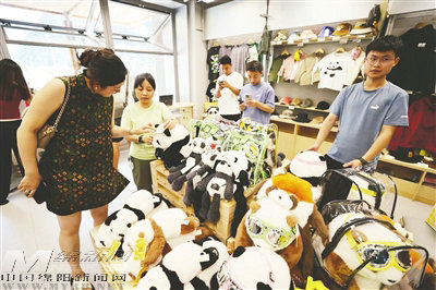 觀賞木座服務區(qū)的熊貓玩偶