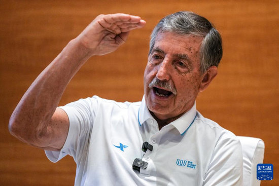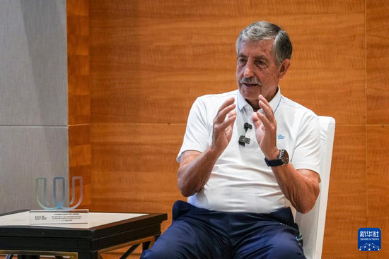 8月5日,國(guó)際世界運(yùn)動(dòng)會(huì)協(xié)會(huì)(IWGA)主席何塞·佩魯雷納接受專(zhuān)訪(fǎng)。 新華社記者 李博 攝