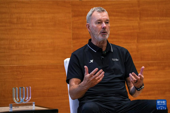 8月5日,國(guó)際世界運(yùn)動(dòng)會(huì)協(xié)會(huì)(IWGA)首席執(zhí)行官阿希姆·高索接受專(zhuān)訪(fǎng)。 新華社記者 李博 攝