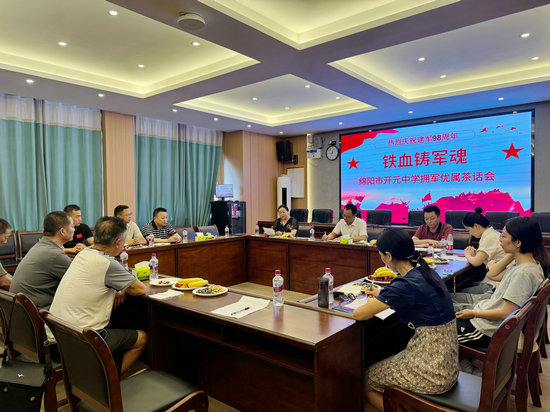 綿陽新聞網(wǎng)訊 為了傳承和弘揚擁軍優(yōu)屬、擁政愛民的優(yōu)良傳統(tǒng),營造尊崇軍人、關(guān)愛軍屬、關(guān)心國防建設(shè)的濃厚氛圍。“八一”建軍節(jié)之際,綿陽市開元中學(xué)在和美樓5樓開展了“鐵血鑄軍魂 丹心映山紅”為主題的擁軍優(yōu)屬茶話會。該校黨委副書記、校長敬正雄,工會主席任明生及退役軍人、現(xiàn)役軍屬代表齊聚一堂,共話軍民情誼,共慶建軍佳節(jié)?;顒佑晒敝飨r紅艷主持。