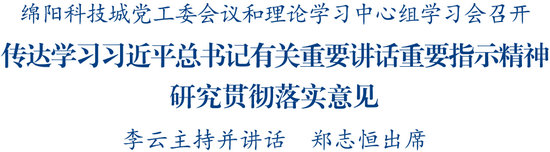 綿陽新聞網(wǎng)訊 8月6日,綿陽科技城黨工委會議和理論學(xué)習(xí)中心組學(xué)習(xí)會召開,傳達學(xué)習(xí)習(xí)近平總書記在7月30日中央政治局會議上的重要講話精神和對防汛救災(zāi)工作作出的重要指示精神,圍繞深入學(xué)習(xí)領(lǐng)會習(xí)近平文化思想,以及省委十二屆七次全會、市委八屆十次全會精神開展集體研討和個人自學(xué)。市委副書記、市長、科技城黨工委書記李云主持會議并講話。
