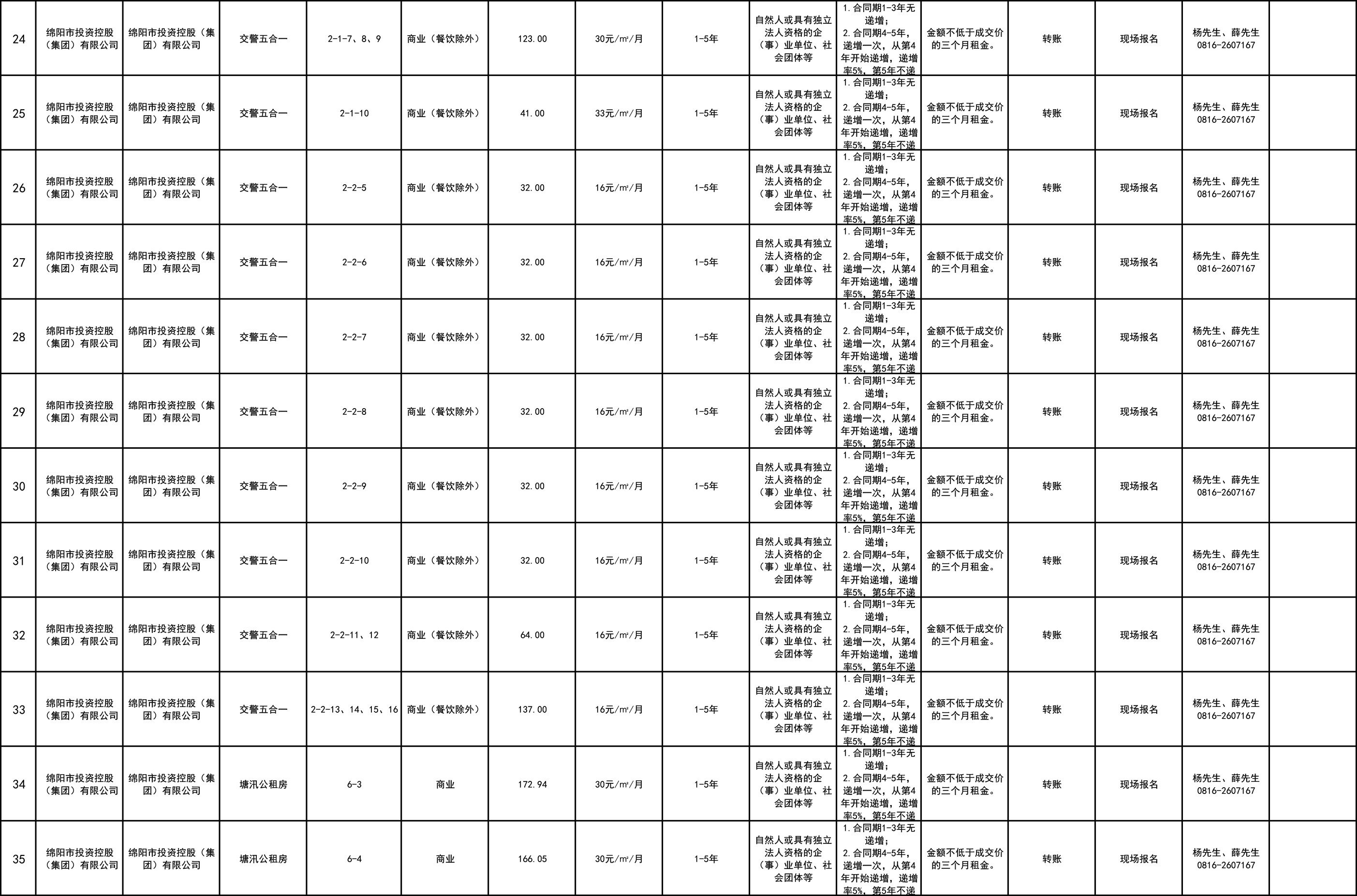 綿陽市綿投商業(yè)運(yùn)營管理有限責(zé)任公司資產(chǎn)出租公告