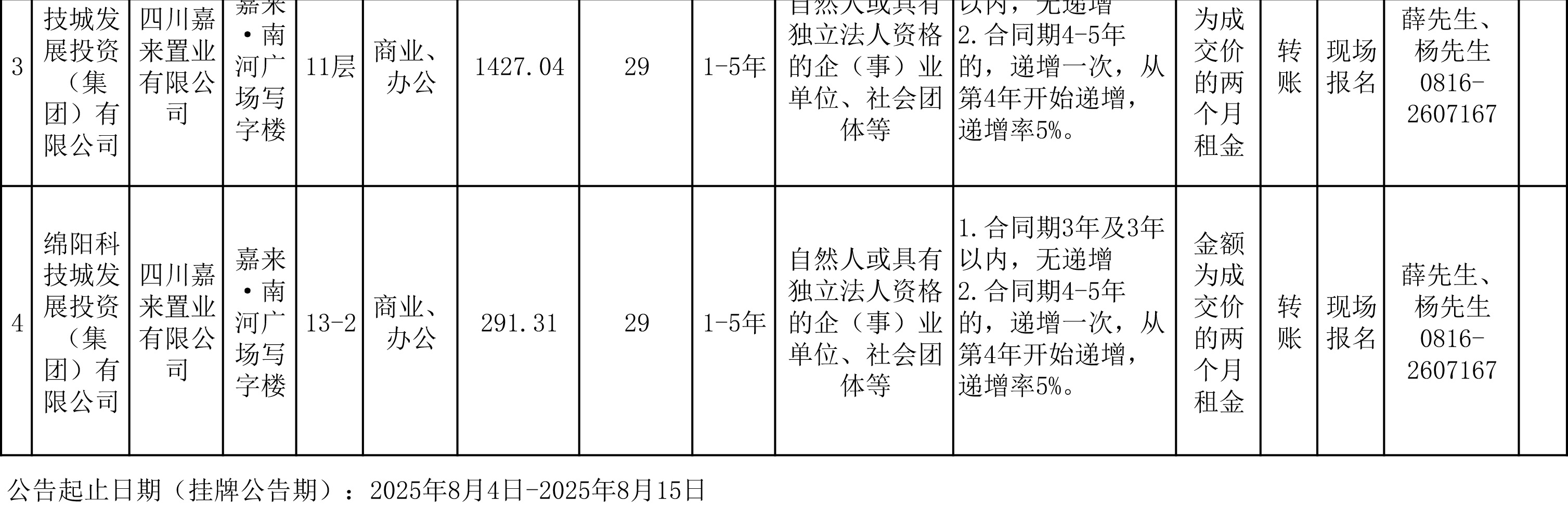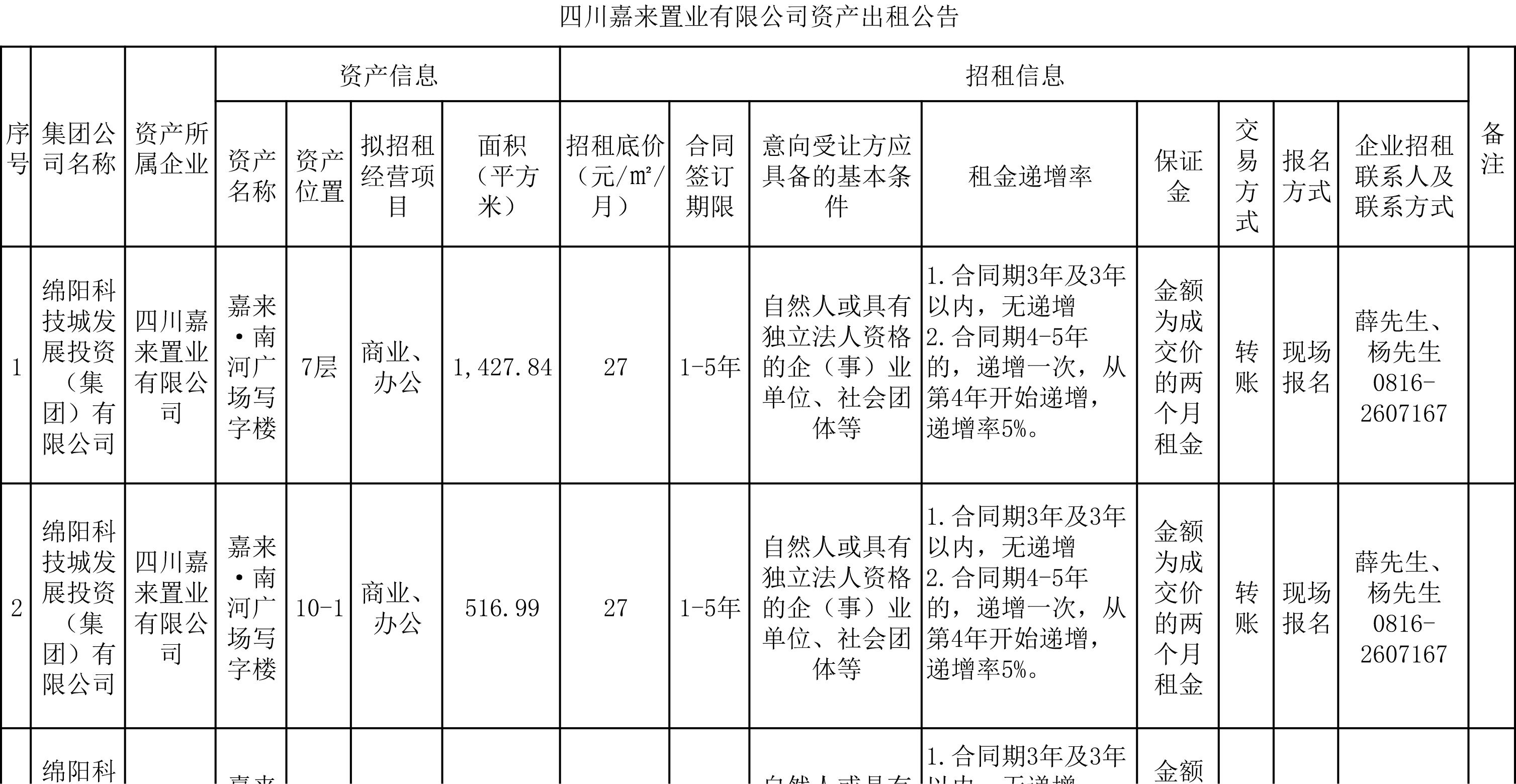 四川嘉來置業(yè)有限公司資產(chǎn)出租公告
