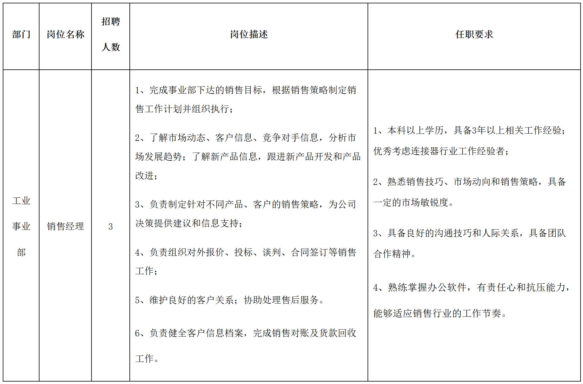 現(xiàn)因公司經(jīng)營發(fā)展需要,現(xiàn)面向長虹控股集團(tuán)內(nèi)、外部誠聘銷售經(jīng)理崗位人員,具體崗位招聘信息公告如下:
