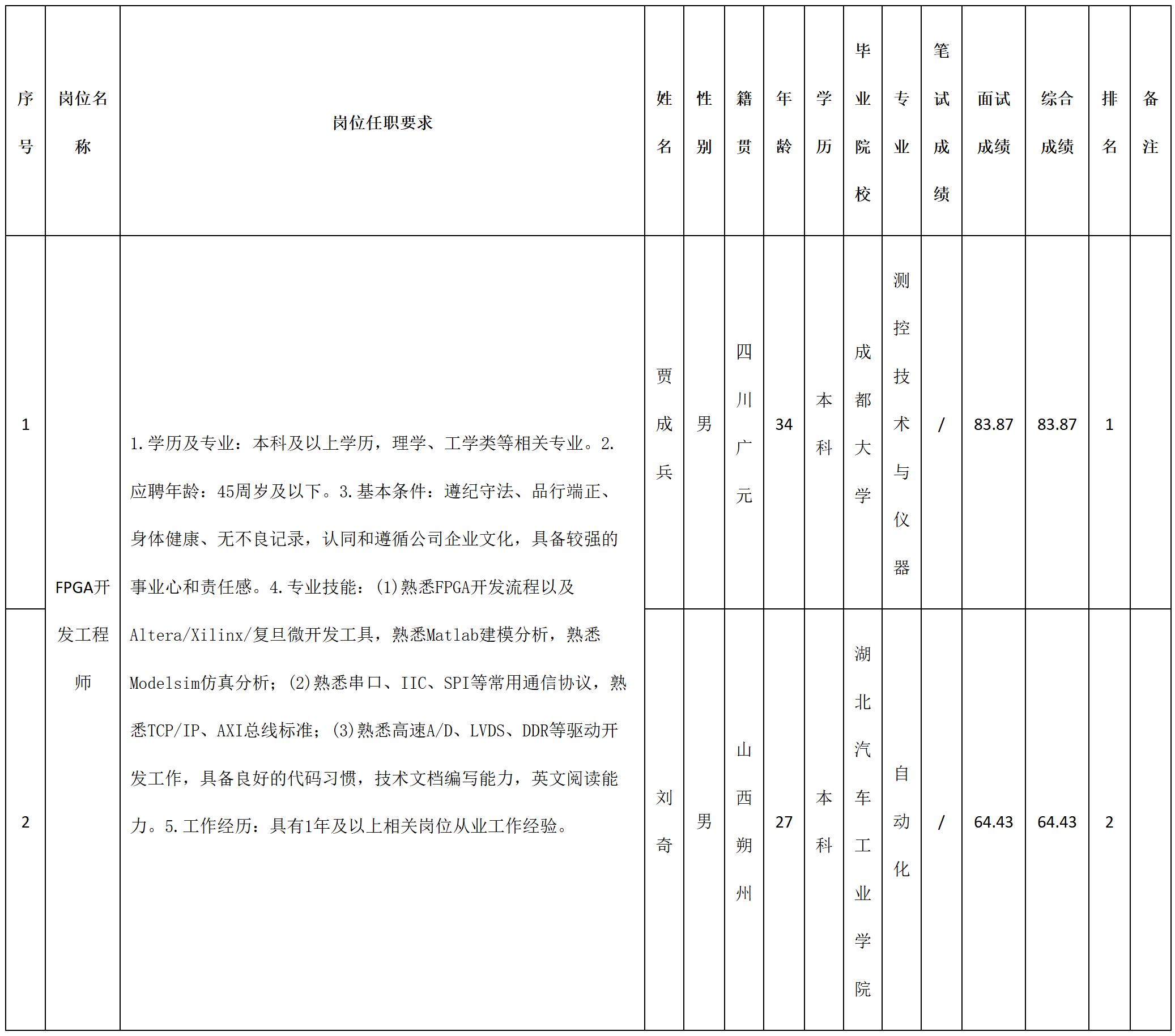 根據(jù)四川九強(qiáng)通信科技有限公司發(fā)布的招聘公告及招聘相關(guān)規(guī)定,經(jīng)筆試、面試等程序,現(xiàn)將筆試(面試)成績予以公示。