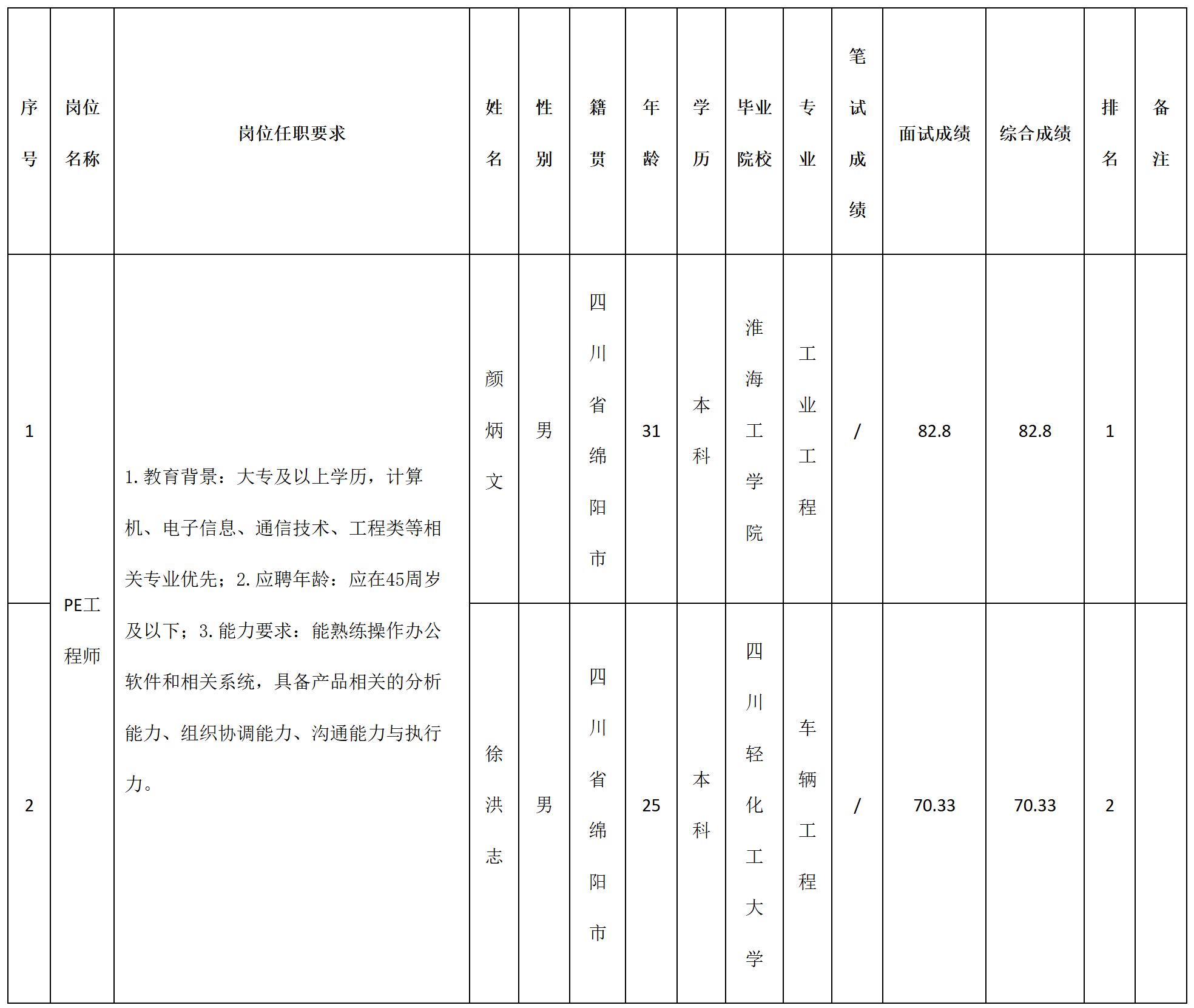 根據(jù)四川九州電子科技股份有限公司發(fā)布的招聘公告及招聘相關(guān)規(guī)定,經(jīng)筆試、面試等程序,現(xiàn)將筆試(面試)成績予以公示。