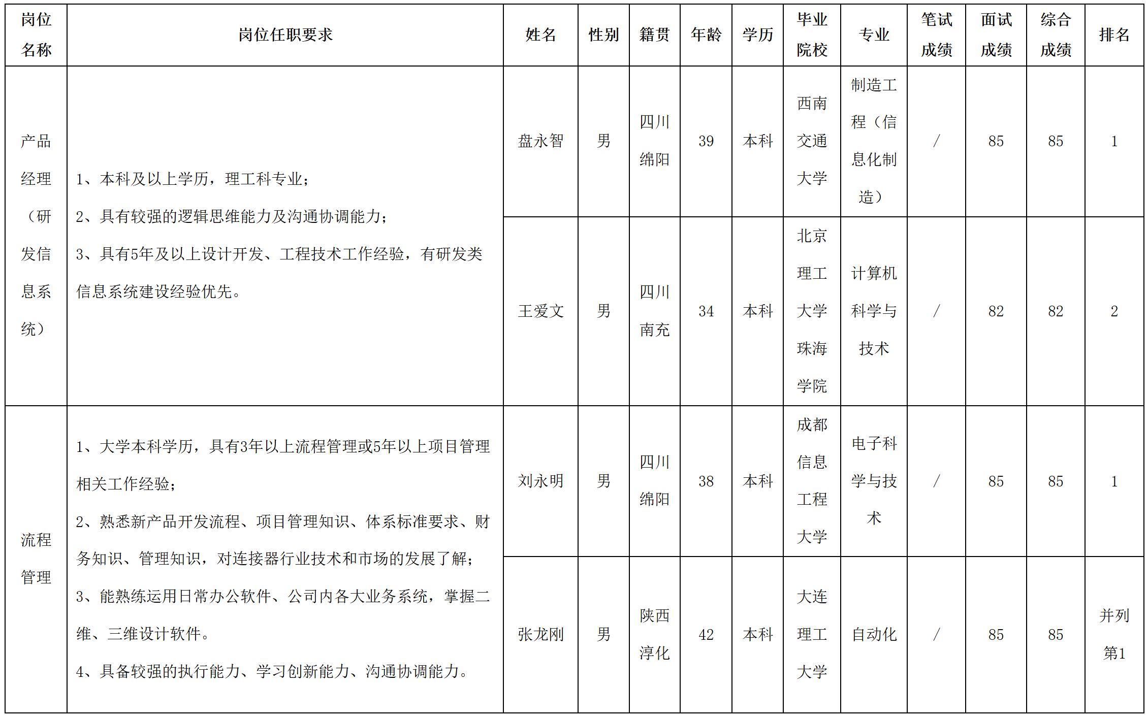根據(jù)四川華豐科技股份有限公司發(fā)布的招聘公告及招聘相關(guān)規(guī)定,經(jīng)筆試、面試等程序,現(xiàn)將筆試(面試)成績予以公示。